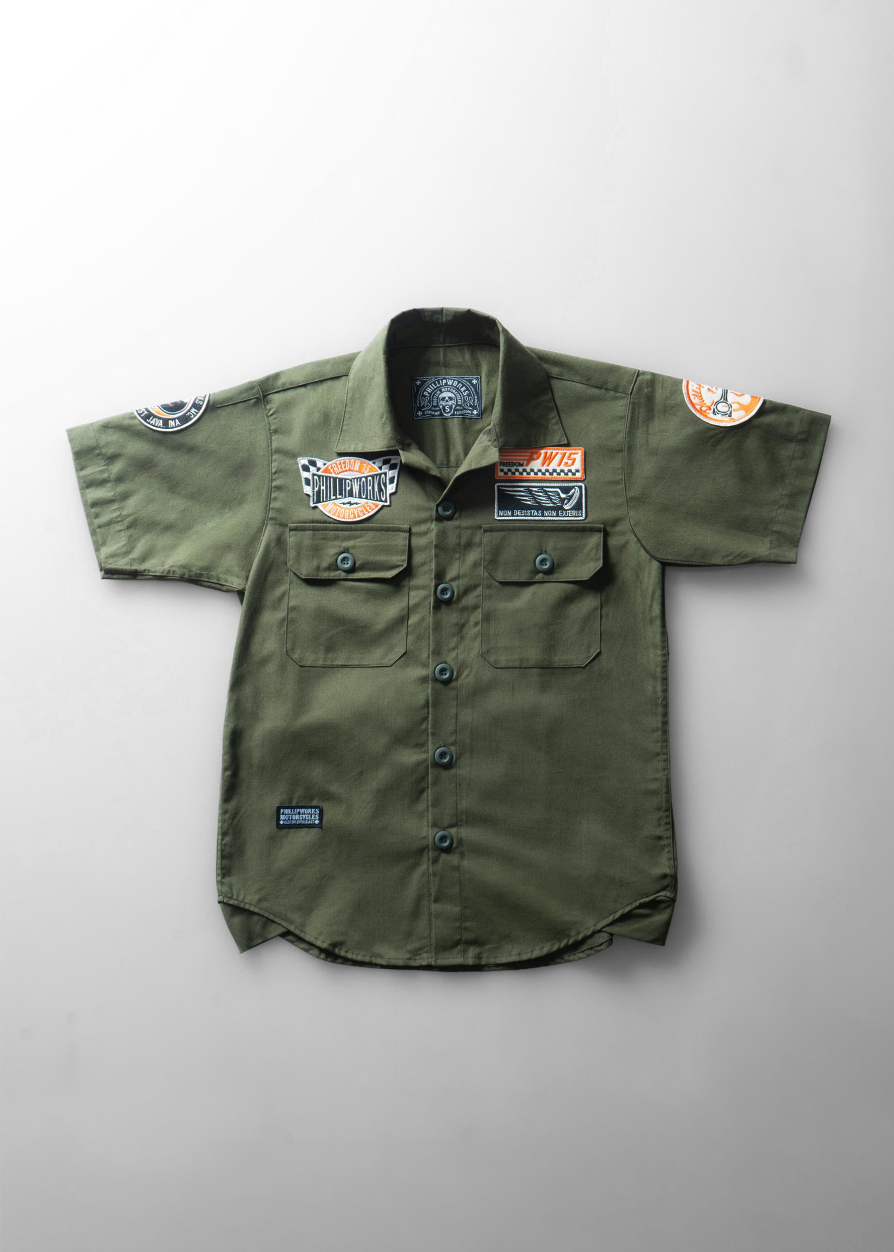 Rp399.000Deskripsi Produk Workshirt dengan cuttingan Reguler (flat cut shirt/relaxed fit) , menggunakan bahan baby canvas dengan hijau dan puutihh, dilengkapi dengan ilustrasi macan kumbang dan typography custom motorcycle, yang memberikan kesan bold dan khas Phillipworks. Instruksi Pencucian: Cuci dengan air dingin Jangan gunakan pemutih Jangan disetrika langsung pada ilustrasi atau…