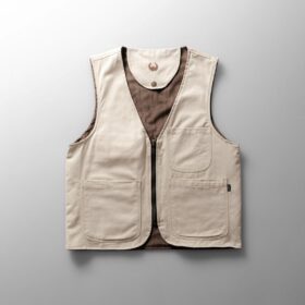 Two-sided vest with a combination of canvas and corduroy materials, a classic statement piece.